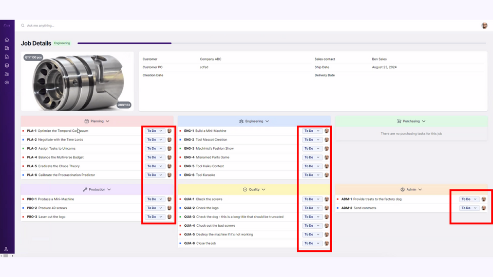 Most enterprise management software solutions for manufacturing shops tend to focus heavily on core processes, such as production, scheduling, and inventory management, often overlooking important non-manufacturing tasks. However, fulfilling job assignments effectively requires addressing these items as well.
